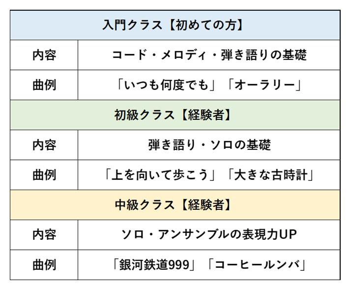※体験後、そのまま弾き語り・ソロのクラスに続けて参加することもできます。